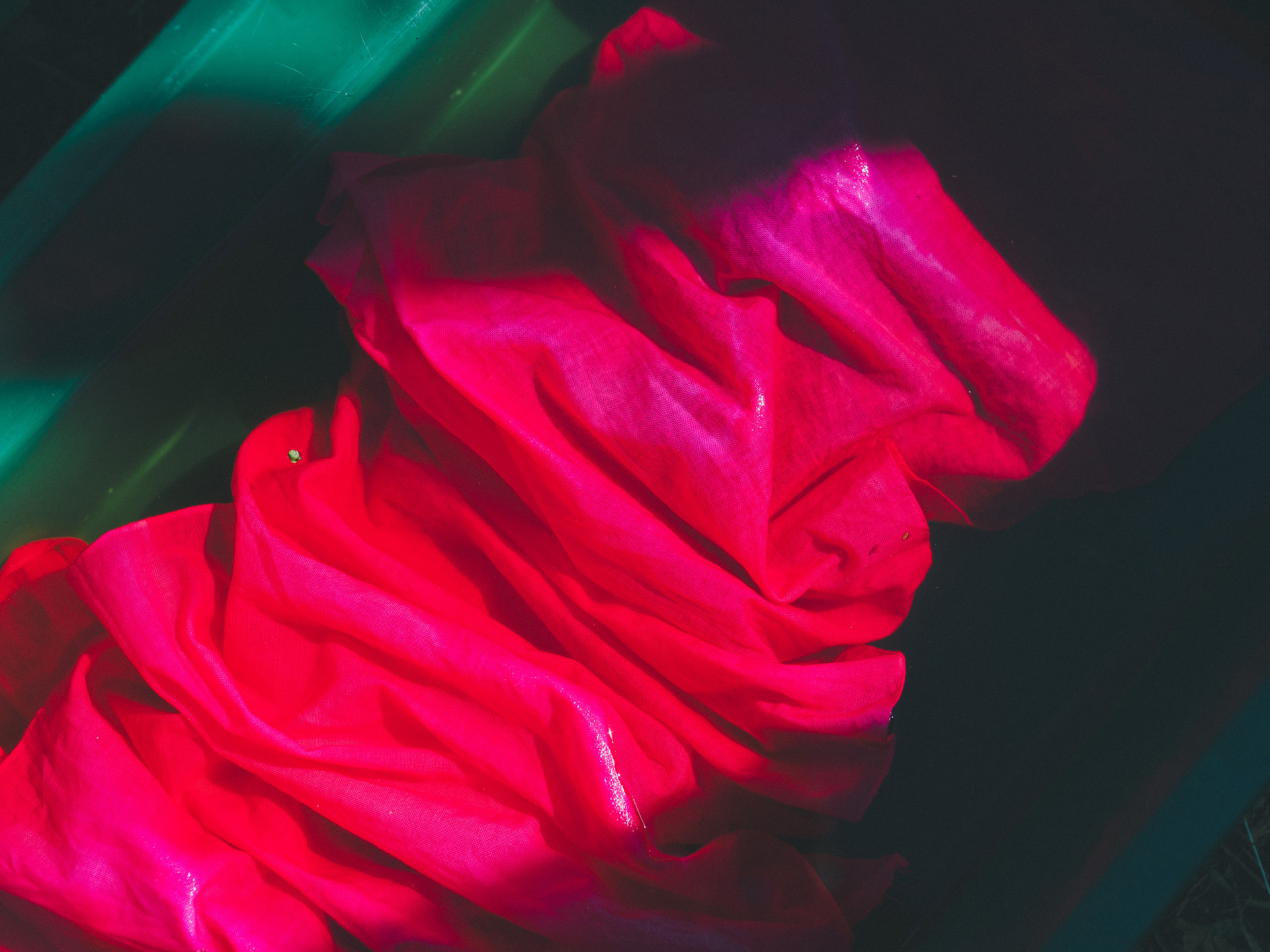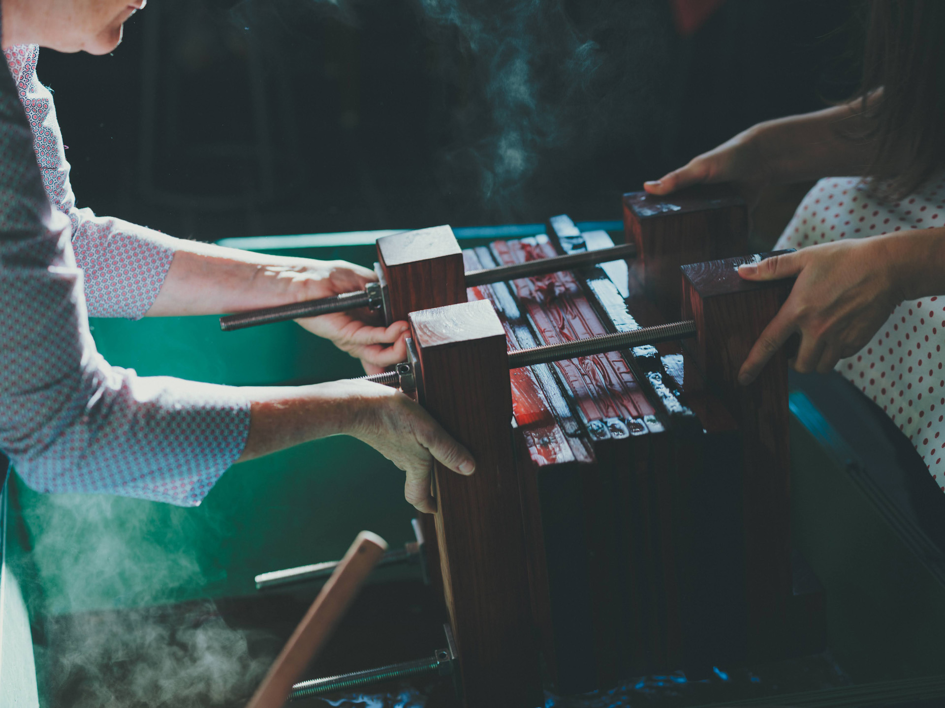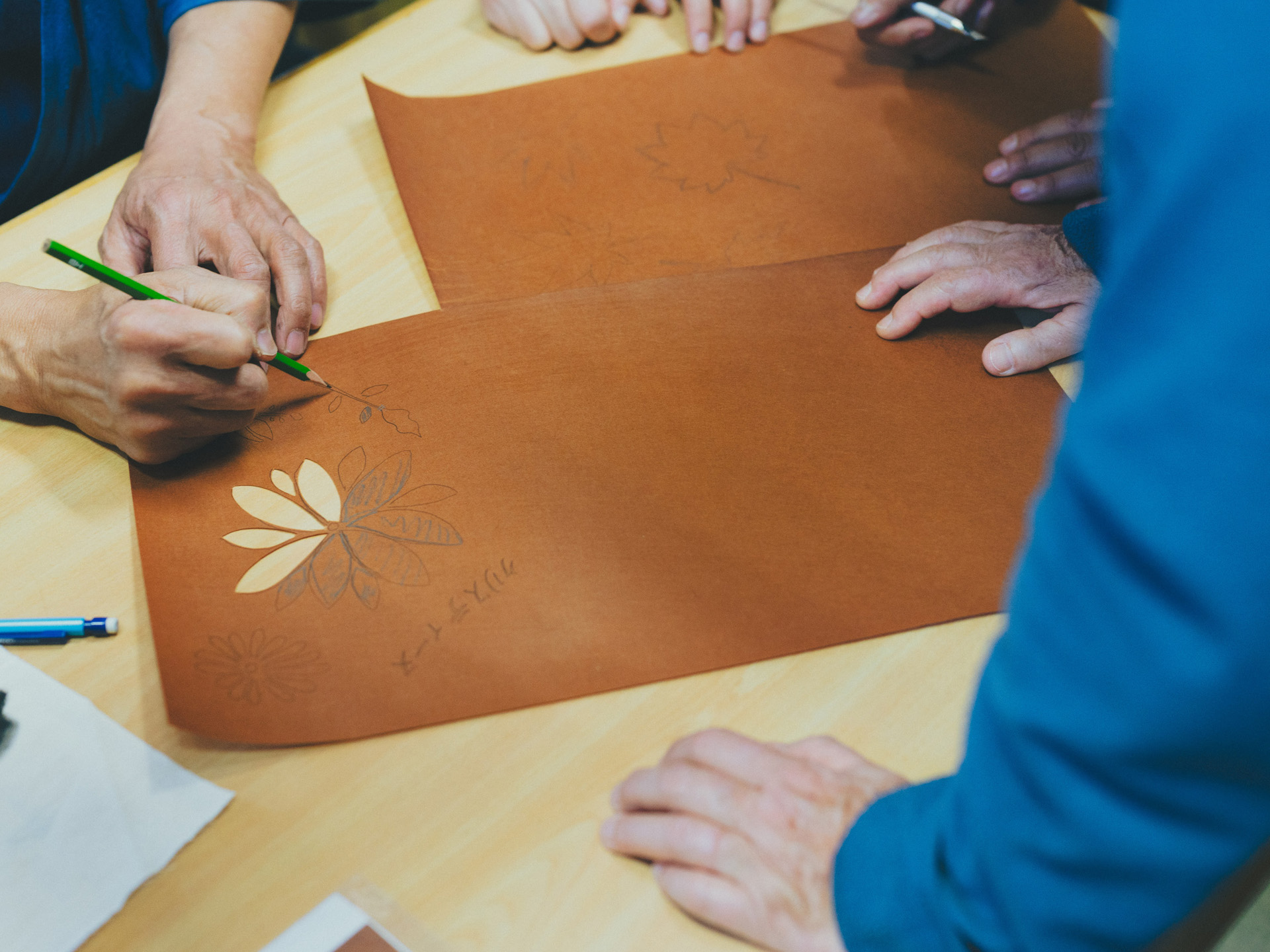 Grâce à des recherches initiées par Haruko YOSHIMURA, de la 6ème génération d’une famille de spécialistes du Beni Itajime Shibori, une méthode de teinture par réserve a été redécouverte. Dans cette technique, des motifs sont gravés sur des planches de bois. Ensuite, la soie est pliée et comprimée entre ces bois avant d’être teinte. Nous avons eu le privilège de participer à une reconstitution, organisée en partenariat avec le jardin des plantes tinctoriales de Takasaki et l’association de Yoshimura appelée Beni no Kai. Cette journée de teinture exceptionnelle nous a permis d’obtenir une pièce incroyable d’un rouge garance profond, avec des motifs parfaitement dessinés grâce aux bois gravés.