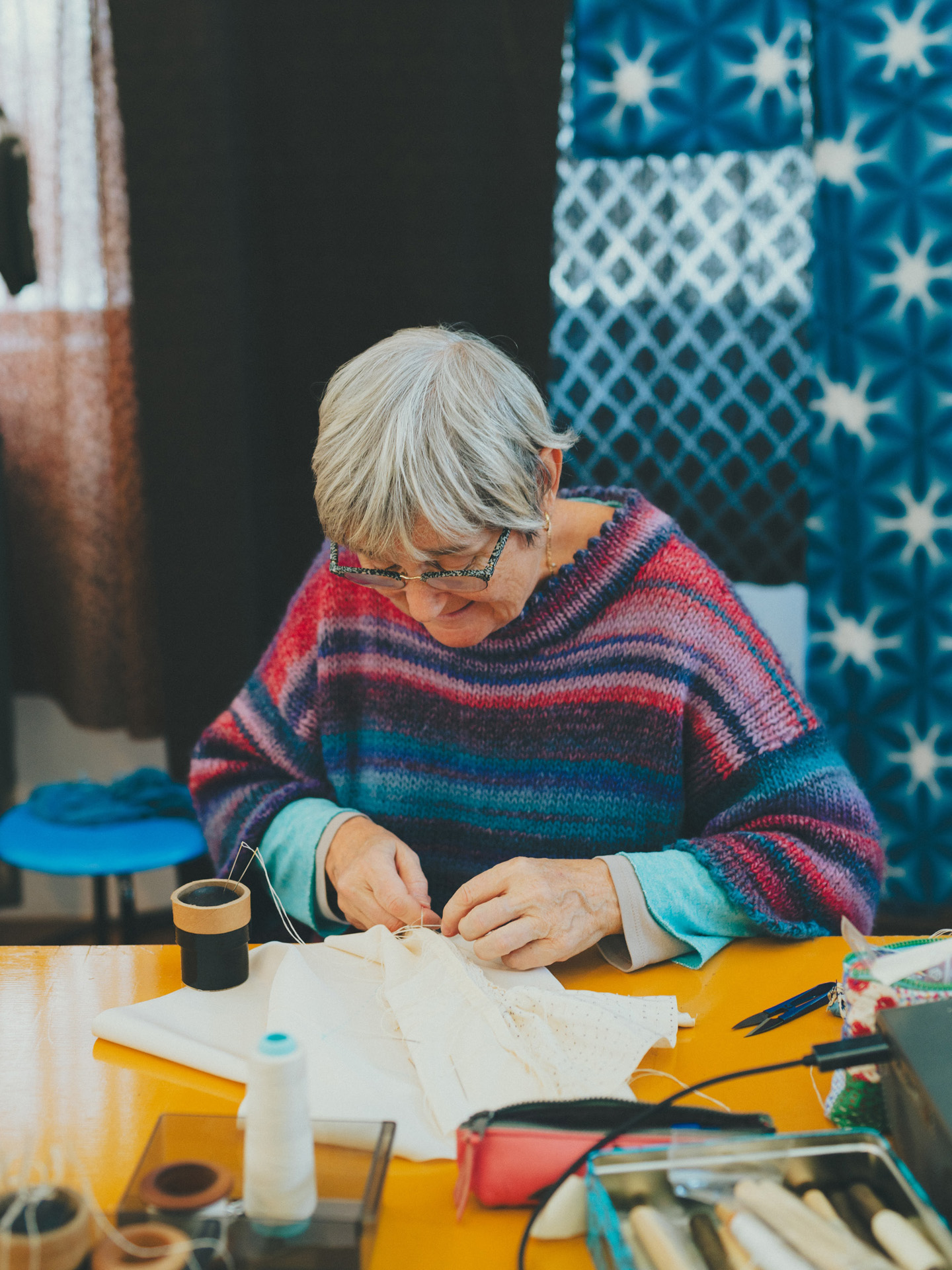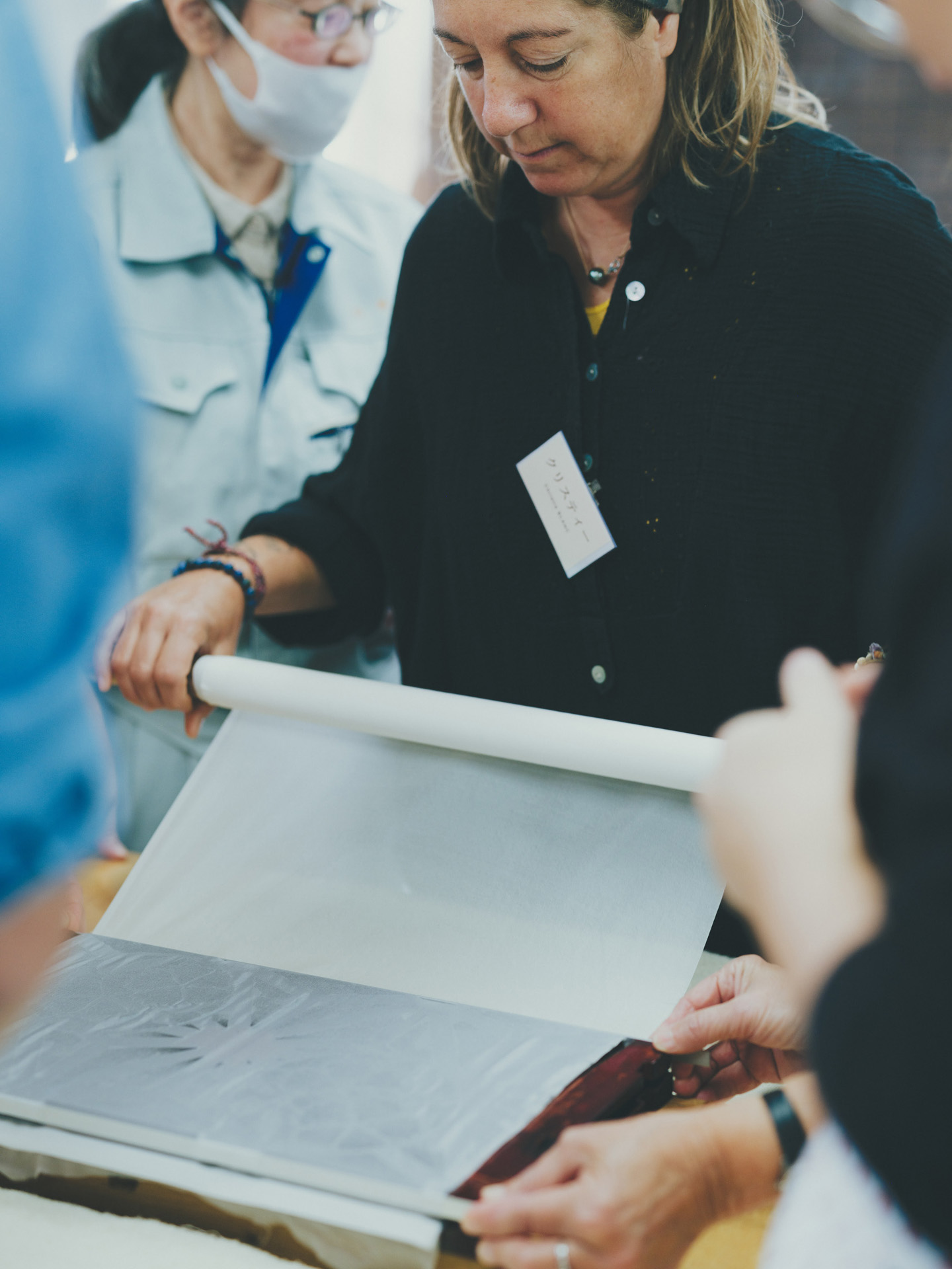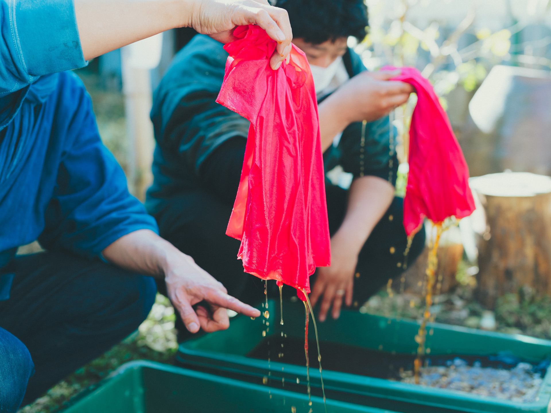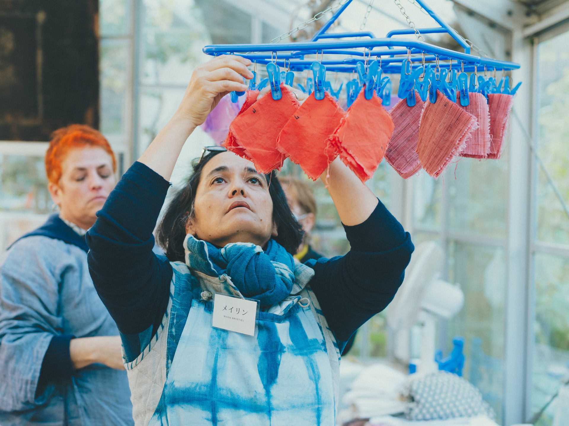 Du 20 novembre au 6 décembre 2023, nous avons eu la chance de suivre une formation exceptionnelle au Beni Itajime Shibori, une méthode de teinture par réserve, animée par Haruko Yoshimura, héritière de cet atelier et des spécialistes du jardin des plantes tinctoriales de Takasaki. Nous avons poursuivi notre formation à Kusaki Kobo, par un stage de quatre jours de découverte de la teinture végétale japonaise, dirigé par Kazuki Yamazaki maître teinturier et chercheur. À Arimatsu, capitale du Shibori, l’artisan Hiroaki Kuno nous a formé au Shibori 3D a en nous accueillant dans son entreprise historique et innovante Shibori Dyeing Kuno Studio.