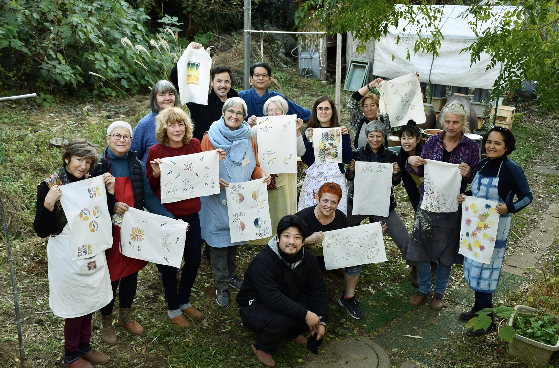 Nous sommes de retour chez les YAMAZAKI, des teinturiers de la 4e génération, pour son enseignement toujours riche et rigoureux, qui remet en question nos pratiques européennes. Nous avons découvert l’utilisation des plantes japonaises telles que le Carthame, le Murasaki, la Garance japonaise appelée akane , etc. Nous y avons créé de magnifiques nuanciers. Nous avons également exploré des techniques telles que le Surizome, l’Irosashizome et le Bokashizome, en créant des pigments végétaux et des pochoirs que nous avons appris à découper. Grâce à Kazuki et son fils Hiroki, nous avons plongé dans l’histoire des couleurs, des textiles et des productions japonaises de tous les temps.