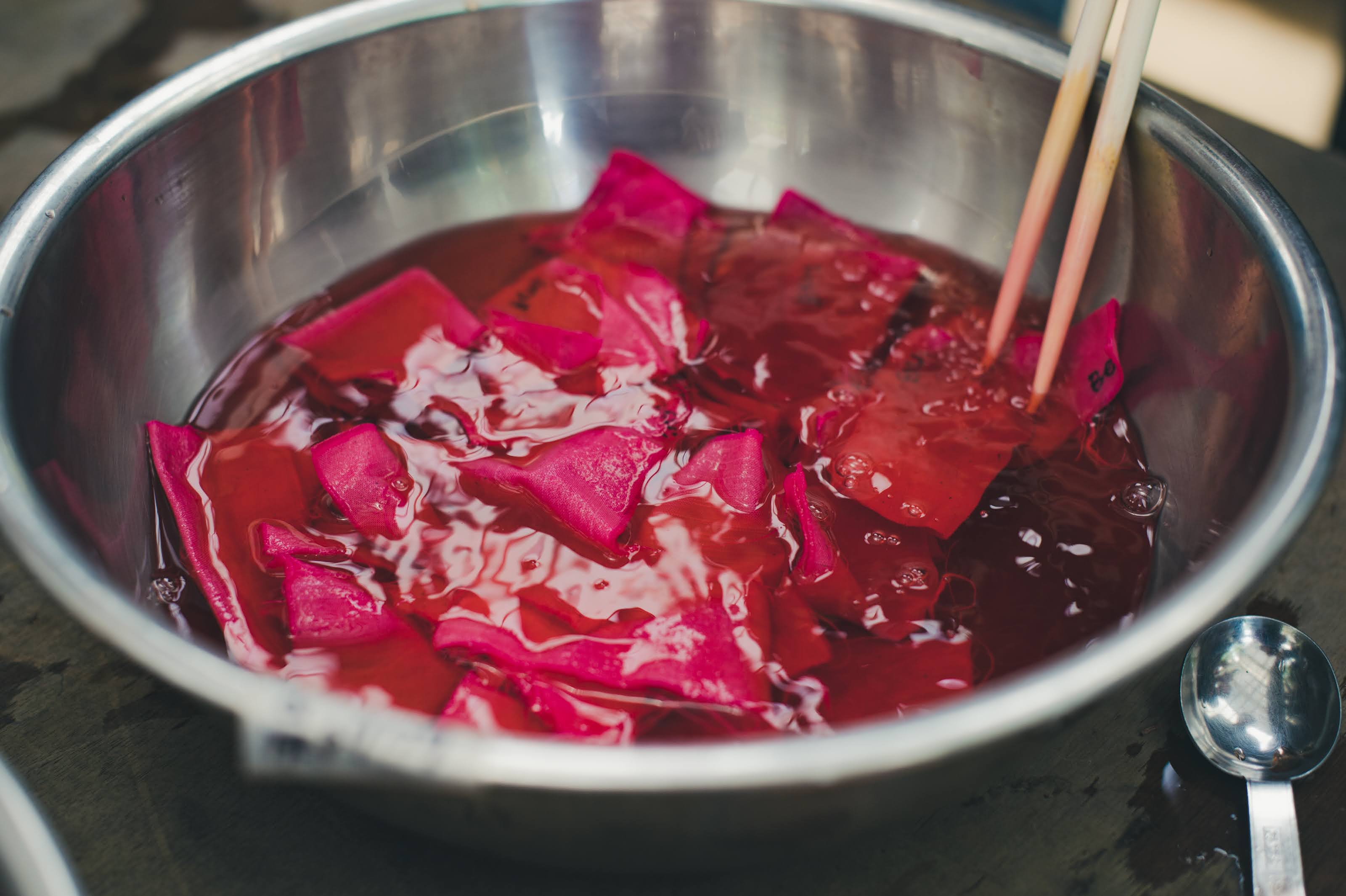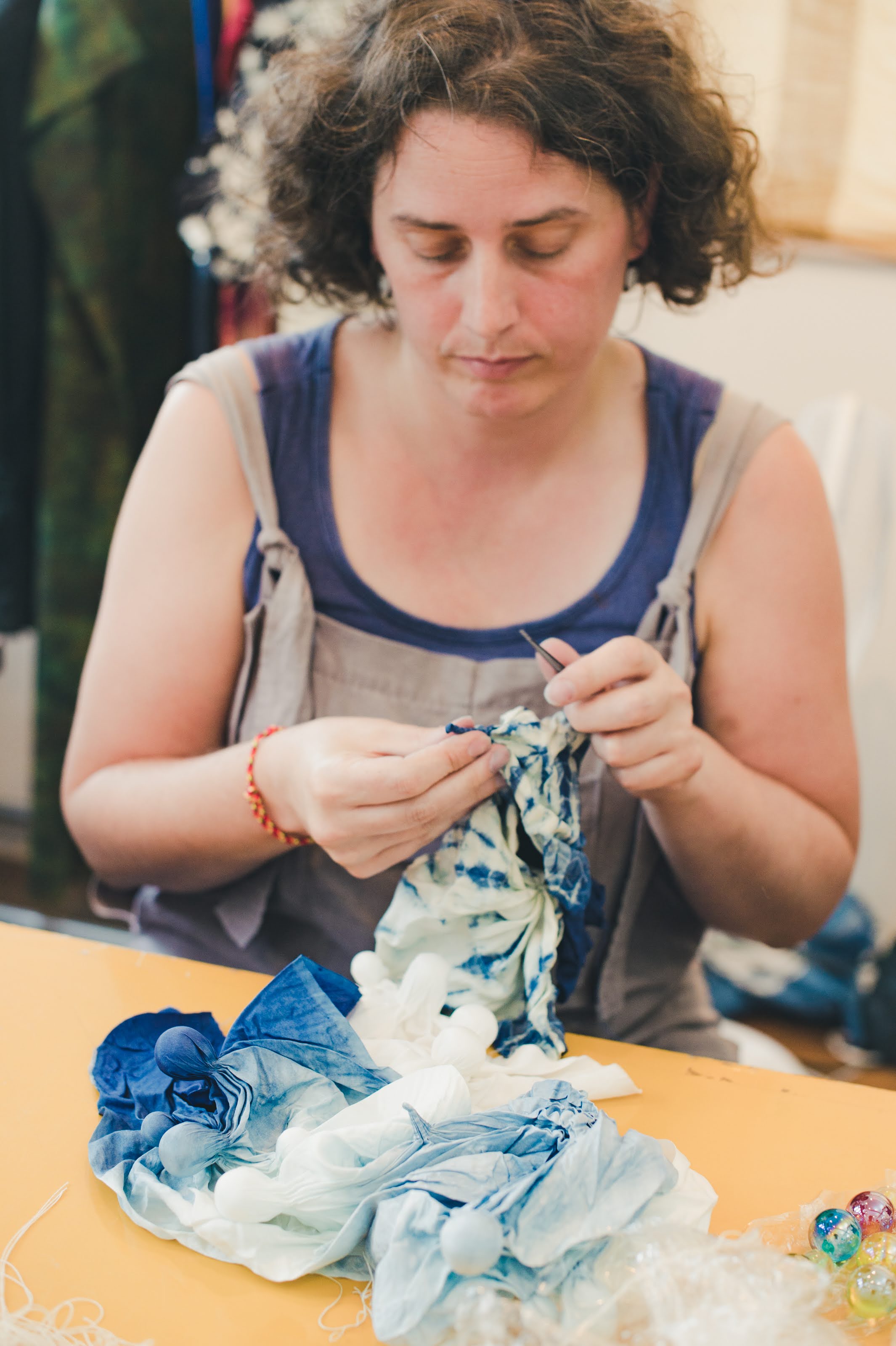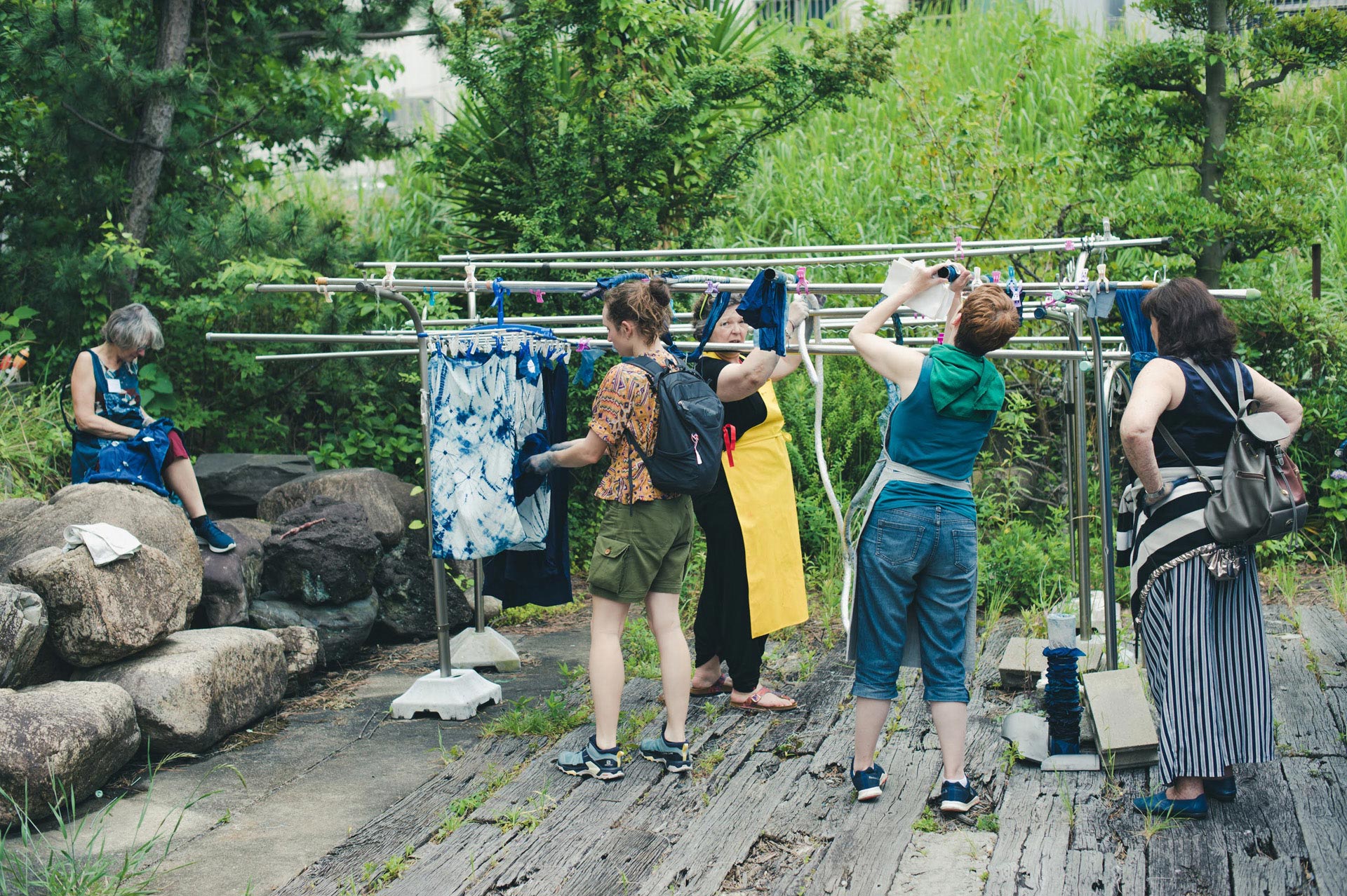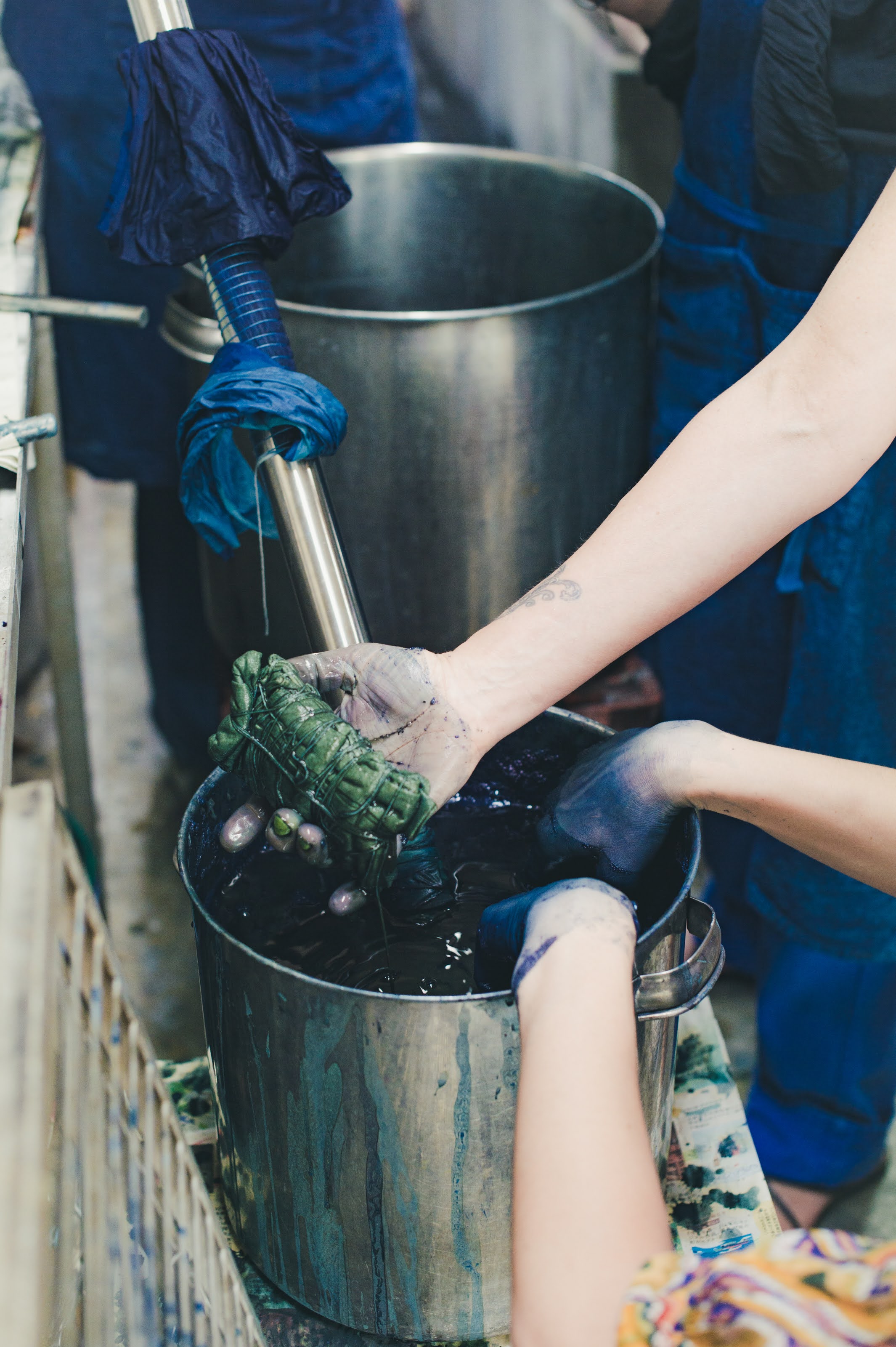 Ce sont les connaissances accumulées par quatre générations de teinturiers que nous ont enseignés Kazuki Yamazaki et son fils Hiroki. Grâce à leur expertise en chimie et en botanique, nous avons appris à tirer le meilleur parti de chaque plante japonaise, telles que la Garance japonaise, le Carthame, le Murasaki, le Kakishibu, etc. Nous avons exploré les procédés de mordançage japonais pour lesquels l’alternance mordançage/teinture est différente de notre approche européenne. Ils nous enseignent également l’art du Surizome, la fabrication de pigments végétaux, le découpage de pochoirs en papier japonais et l’utilisation de pinceaux spécifiques.